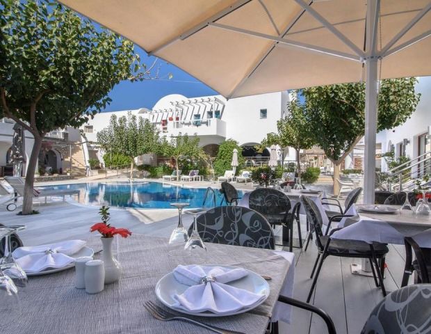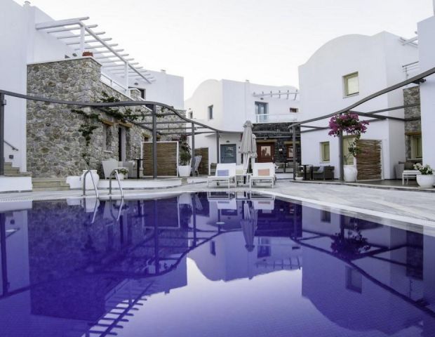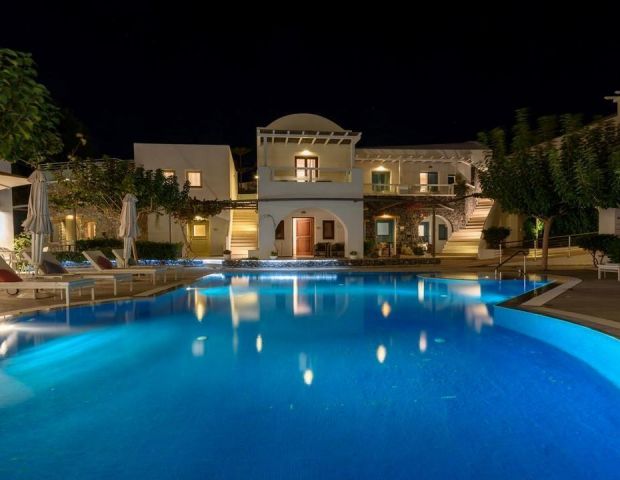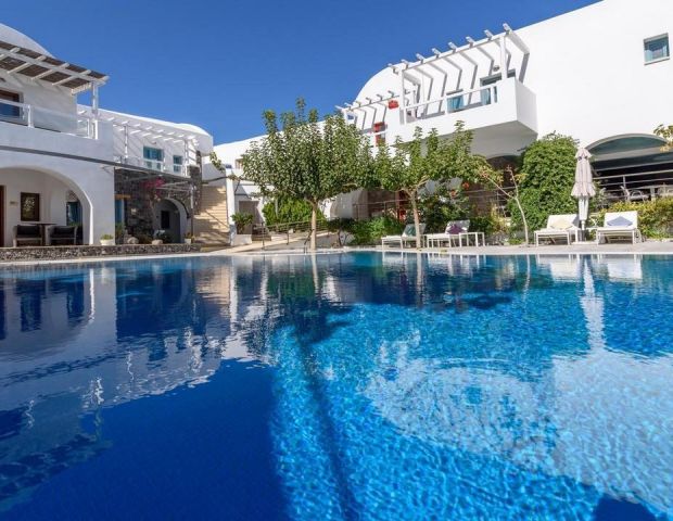 Хотелският комплекс се намира на 8 километра от столицата на остров Санторини – Фира, а летището е на 4 километра от хотела. Комплексът е изграден с цел да осигури максимална почивка и комфорт на своите гости и разполага с много удобства и модерни съоръжения. Комплексът е с концепция: