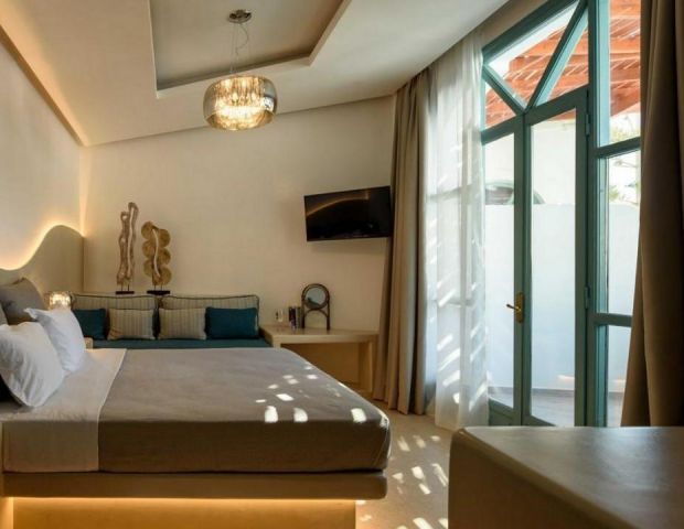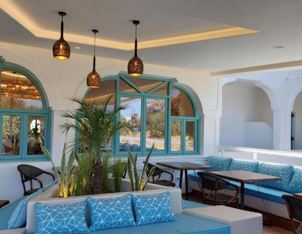 На 50 м от хотела може да намерите плаж, който има гладък черен пясък и е награден със син флаг. На същото разстояние можете да се насладите на живописни таверни или на космополитни нощни клубове с гледка към безкрайното море.
