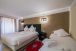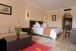 Тройна стая с гледка градина: С капацитет до 3 възрастни площ 35 кв. м. Просторната тройна стая разполага с 2 двойно легло и 1 единично или 3 единични легла, климатик, тераса с изглед към градината, както и самостоятелна баня с вана..