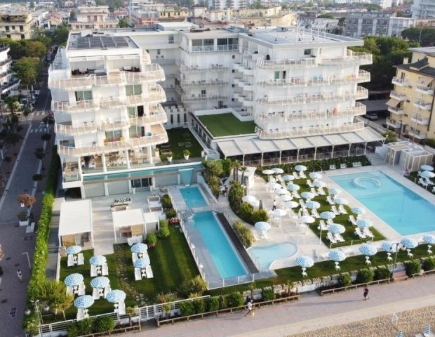Разположен на 150 метра от Адриатическо море, хотелът предлага Турска баня, гореща вана ,сауна и още много страхотни удобства .Той е удобно разположен, само на няколко метра от крайбрежната алея, пълна с най-модерните магазини, барове и ресторанти в града. В обсега на кратка разходка или още по-кратко пътуване с някой от безплатните велосипеди на хотела ще откриете разнообразие от атракции. Наблизо има тенис кортове, писти за конна езда, голф игрище и аквапарк Aqualand.