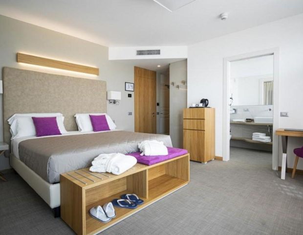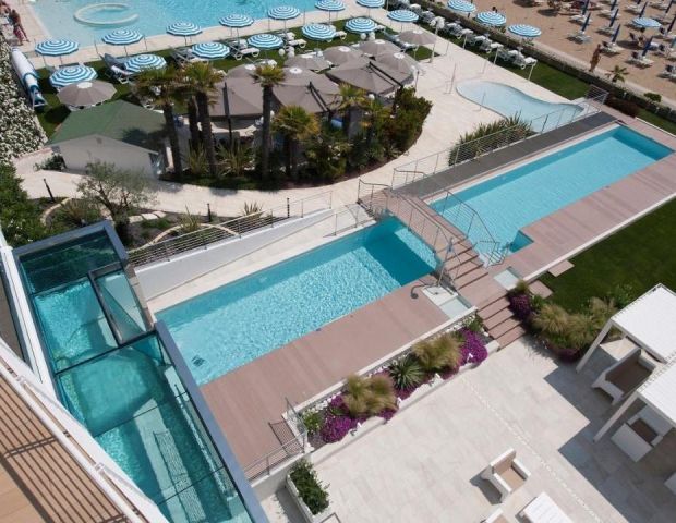 Разположен на 150 метра от Адриатическо море, хотелът предлага Турска баня, гореща вана ,сауна и още много страхотни удобства .Той е удобно разположен, само на няколко метра от крайбрежната алея, пълна с най-модерните магазини, барове и ресторанти в града. В обсега на кратка разходка или още по-кратко пътуване с някой от безплатните велосипеди на хотела ще откриете разнообразие от атракции. Наблизо има тенис кортове, писти за конна езда, голф игрище и аквапарк Aqualand.