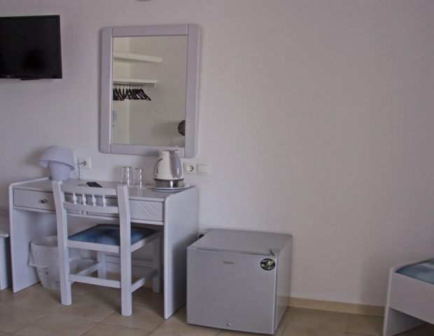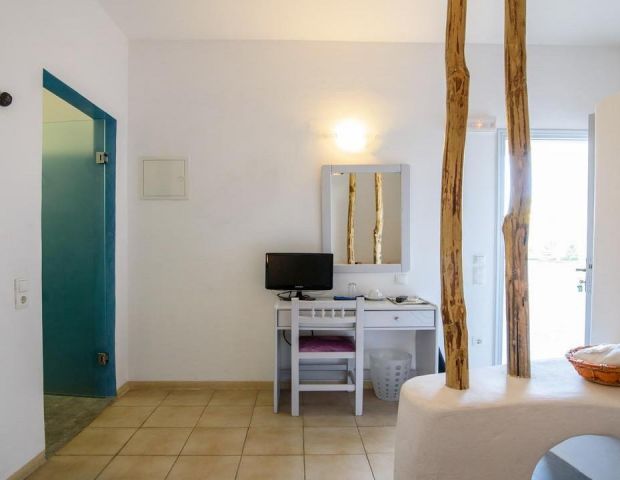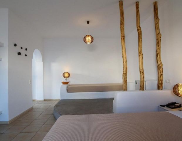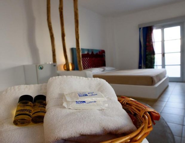 Всички стаи са декорирани в модерен цикладски архитектурен стил и разполагат с всички удобства, от които се нуждаете. Стаите са снабдени с климатик, телевизор с плосък екран със сателитни канали, хладилник, сейф, сешоар, собствена баня с душ, тоалетни принадлежности, балкон или тераса.