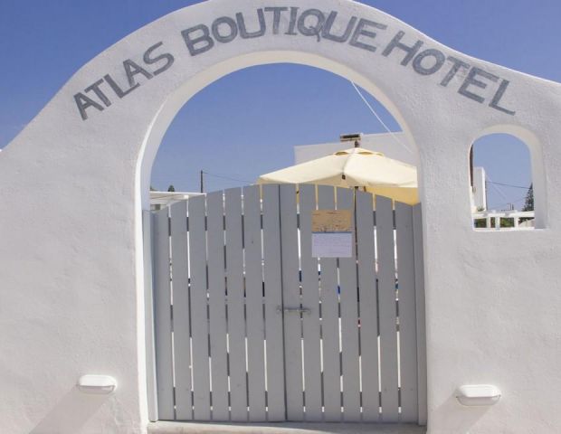 „Atlas Boutique Hotel”3* се намира в Камари. Състои от една основна сграда и е построен в съвременна цикладска архитектура с много влияние от природата. Намира се на 50 метра от плажната алея, където можете да намерите ресторанти, магазини и барове, или просто да се разходите до плажа. За да стигнете до останалите части на Санторини, може да отидете до автогарата, която се намира на 30 метра от хотелите, или да паркирате колата или велосипеда си на обществения паркинг на 100 метра от хотела. Плажът Камари се намира на 30 метра. Чадъри и шезлонги там се ползват срещу заплащане.