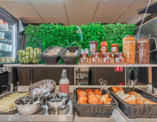 Всяка сутрин се предлага закуска на шведска маса. Хотелът разполага и с автомати за напитки и леки закуски.