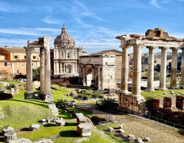 Пешеходна разходка до Колизеума и Римския форум - мястото, откъдето в продължение на няколко века е туптяло сърцето на целия античен свят. Ще се видят базилика Юлия – катедралата на римското правосъдие, базилика Емилия, курията, където векове наред са се събирали сенаторите, рострите - трибуната, откъдето Марк Антоний произнася надгробна реч в памет на Юлий Цезар, арката на Септимий Север, umbilicus urbis - пъпът на света, miliarium aureum - нулевата точка, началото на всички пътища, които водят към Рим, mundus - вратата към отвъдното.