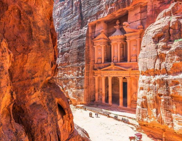Потопете се в магията на Петра - древния „Изгубен град“, който се разкрива пред вас след пешеходна разходка по внушителен каньон със стръмни скални стени, известен като Сик. Там, сред скалите, ще откриете шедьоври на древната архитектура - гробници, храмове и цели фасади, изсечени директно в пясъчника от набатеите преди повече от 2000 години.