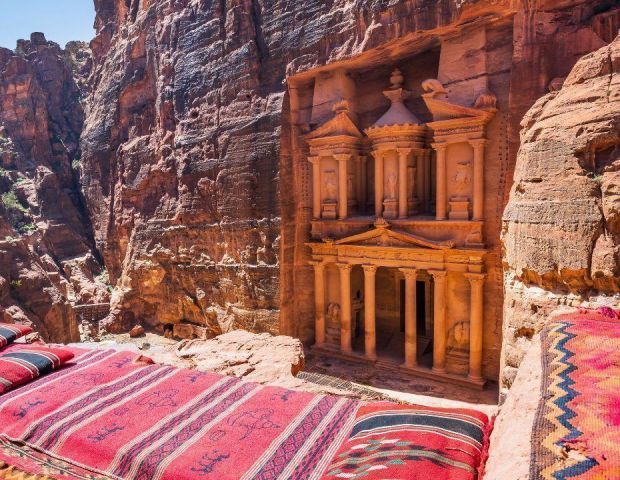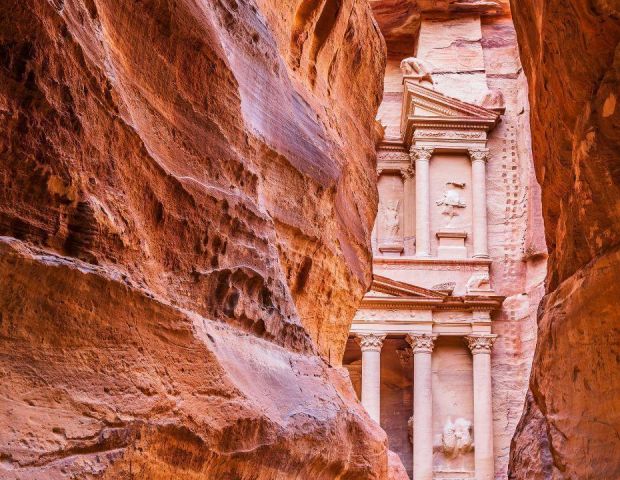 Потопете се в магията на Петра - древния „Изгубен град“, който се разкрива пред вас след пешеходна разходка по внушителен каньон със стръмни скални стени, известен като Сик. Там, сред скалите, ще откриете шедьоври на древната архитектура - гробници, храмове и цели фасади, изсечени директно в пясъчника от набатеите преди повече от 2000 години.