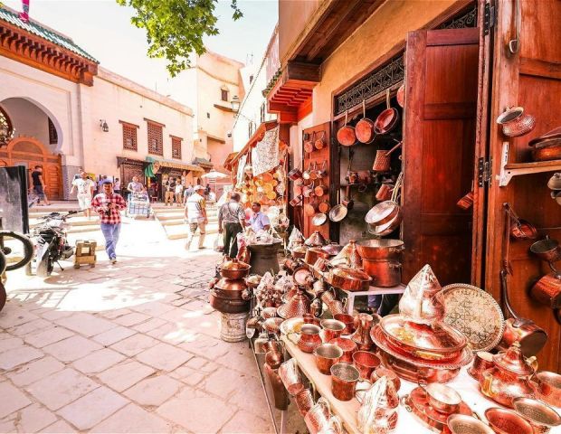 Полудневна обиколка на Фес, включваща посещение на Медината Fez el Bali – огромна лабиринтна мрежа от криволичещи алеи, обградени от древни стени. Въпреки, че достъпът на автомобили не е разрешен, суматохата, шума и виковете се носят навсякъде. Миризмата на кожа, деликатния аромат на ориенталски парфюми, барбекю и сладкиши ще ви потопят дълбоко в атмосферата на този имперски град. Посещение на фонтана Nejjarine - най-известният от мозаечните фонтани на Медината, който се намира в традиционен дърводелски квартал, където навсякъде във въздуха се носи аромат на кедрово дърво.