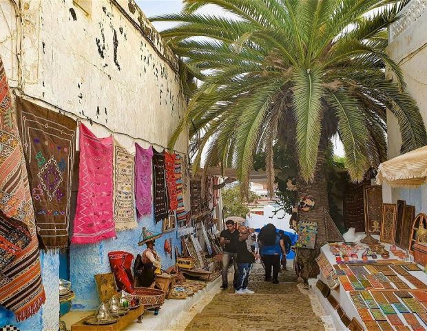 Ессауира Африканската перла на Атлантика - едно от малкото места по света, където расте аргановото дърво. Първото, което вижда всеки в Есауира е чудноватата природа – от едната страна море и километри пясъчна ивица, от другата – горички от дървото тхуя, един от символите на Есауира. Белосани къщички със сини дървени капаци и прозорци, свежи фасади, цветни огради – близко и уютно. Зад тях е скрита арабската крепост от XVIII в., построена по времето на султан Мохамед Сиди. Свободно време за обяд или разходка в Медината (под закрилата на ЮНЕСКО). Ессауирае един художествен център, където туристите имат възможност да видят фрески с ярки цветове, галерии или реплика на Йерусалим от легендарния филм на Орсон Уелс Кралството небесно.