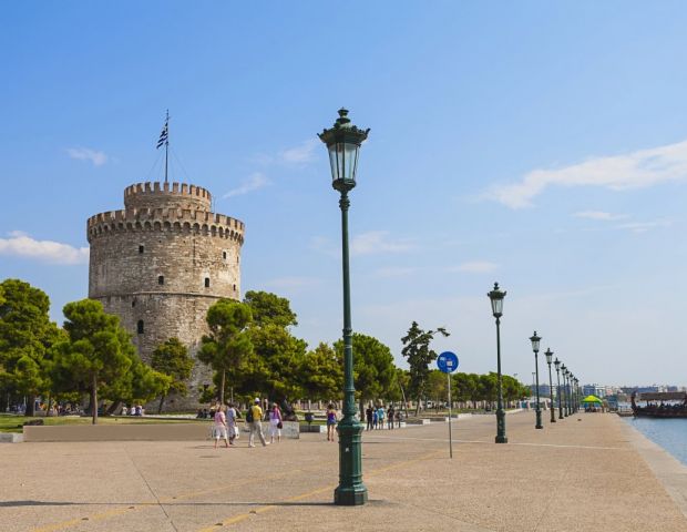 Отпътуване от София в 7.00 ч. от автогара „Сердика”, в 7.30 ч. от Студена - бензиностанция "Shell/Mc Donald's", в 8.00 ч. от Дупница, в 8.30 ч. от Благоевград, в 9.30 ч. от Сандански по маршрут Кулата - Солун. Панорамна обиколка с местен екскурзовод (минимум 2 ч.): Бялата кула - символ на града; църквата „Св. св. Кирил и Методий”; площад „Наварино” с Двореца на Галер; Арката на Галер, построена през 305 г. за отпразнуване на окончателната победа на император Галер Максимилиан над персите; крепостта „Ептапиргио” с прекрасна панорамна гледка към града и Термическия залив; църквата „Св. Димитър” - необичайно красив храм, построен от розови тухли, където се пазят мощите на св. Димитър. Свободно време. Отпътуване за Олимпийската ривиера. Настаняване. Нощувка.
