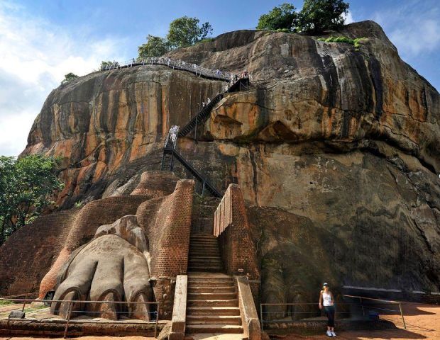 Извисявайки се на 180 метра височина, тази величествена скала приютява на върха си останките от царски дворец от V век, обграден от сложна система от висящи градини, водни басейни и панорамни тераси, откъдето се разкриват безкрайни гледки към джунглата на Централна Шри Ланка.