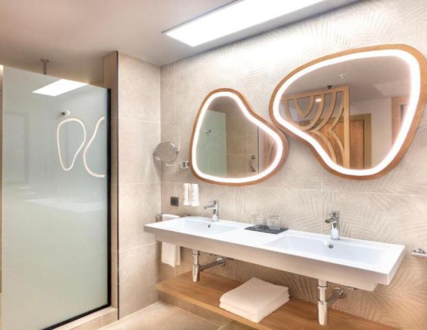 - Стаи с климатик, телевизор с плосък екран, минибар и сейф