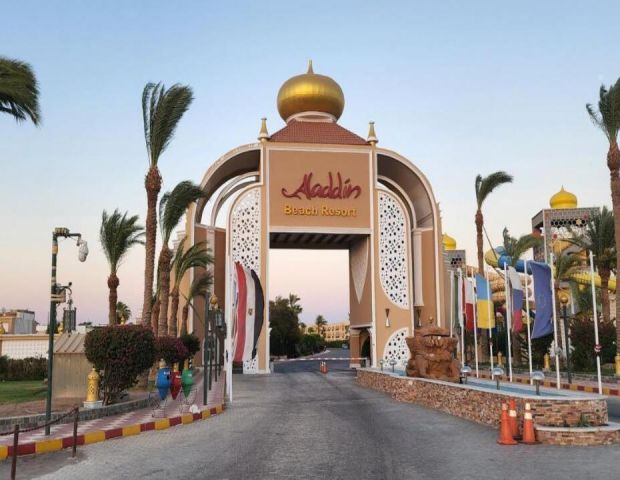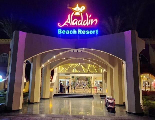 Aladdin Beach Resort 4* се намира на самия бряг на Червено море, в курортната зона на Хургада. Разположен е на около 8–12 км от международното летище и на приблизително 15 км от центъра на града. Хотелът е част от комплекс заедно с съседните Jasmine Village и Ali Baba Palace, с които споделя определени удобства.