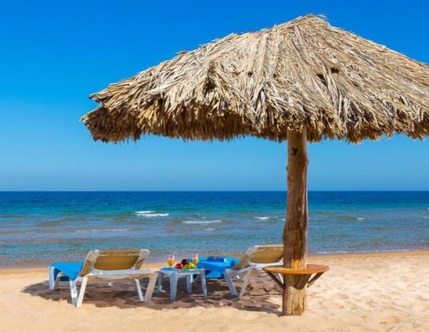 Чадъри, шезлонги и хавлии на плажа и басейна