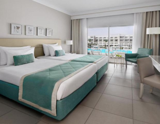 Делукс стая с гледка басейн -43 кв. м, спалня или две отделни легла, душ, тераса/балкон, сешоар, сейф . Максимално настаняване - 2-ма възрастни+1 дете.