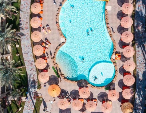 открити плувни басейна и един отопляем басейн през зимата, обхващащ 551 кв.м., джакузи с прясна вода, 451 кв.м. и 429 кв.м., отделен детски басейн 176 кв.м.