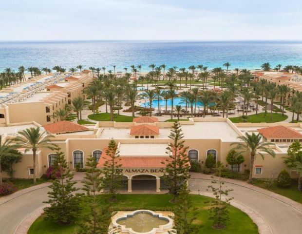 Jaz Almaza Beach, един от най-луксозните курорти на египетското крайбрежие в Almaza Bay, само на 45 км от летището в Мерса Матрух. Със своята прекрасна локация на първа линия и невероятни удобства, този 5-звезден хотел е идеалното място за спокойна и луксозна почивка, подходящ както за семейства, така и за двойки, които търсят истинска релаксация и приключение.