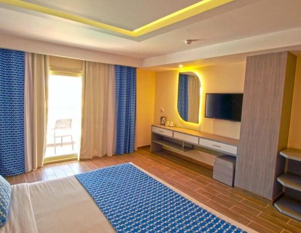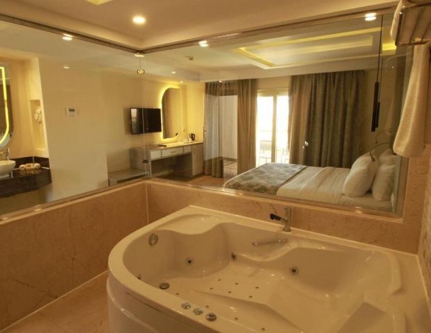 Приблизителна площ на стаята - около 28-32 кв.м. Разполага с телефон, сателитна телевизия, сешоар, сейф, мини бар - срещу допълнително заплащане, електрическа кана с чай и кафе, климатик, баня с тоалетна, балкон или тераса.