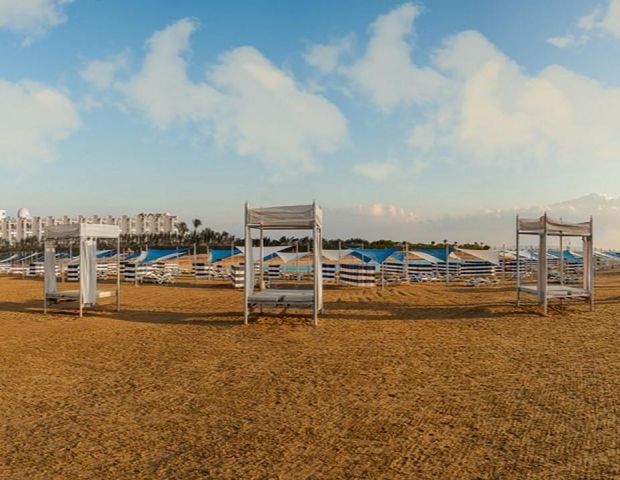 Собствен пясъчен плаж със залив и 3 плувни басейна, включително 1 за деца с чадъри, шезлонги с матраци, плажни огради за защита от вятъра, обслужване от бара, спасители на басейна и на плажа, кърпи за плажа и басейна, табели около басейна;