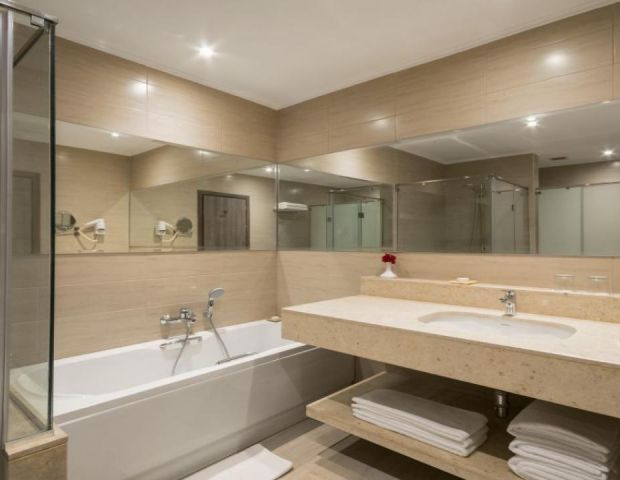 Супериорните стаи са с размер 46 м2 и предлагат максимално настаняване за двама възрастни, докато в делукс стаите с размер 58 м2 могат да бъдат настанявани до двама възрастни с две деца. Гостите могат да избират между стаи с гледка градина, гледка басейн, частична гледка море, както и Swip-up стаи с директен достъп до басейна от терасата на стаята. За клиентите, желаещи ексклузивно настаняване, се предлагат апартаменти Executive с размер 92 м2, Deluxe с размер 110 м2 и Royal с размер 141 м2. Луксозните вили на два етажа, с размер от 216 м2, са подходящ избор за големи семейства и компании, тъй като предлагат настаняване за до 4 възрастни с 3 деца.