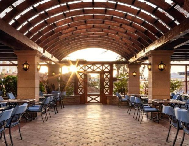 Хотелът е луксозен комплекс с ориенталска архитектура и просторна градина. Разполага с основна сграда и няколко допълнителни крила, предлагащи разнообразие от удобства. Подходящ е както за семейства с деца, така и за двойки, търсещи спокойна почивка.  Собствен, с коралов риф. Чадъри, шезлонги и матраци на плажа и при басейна - безплатно. Плажни кърпи – безплатно.