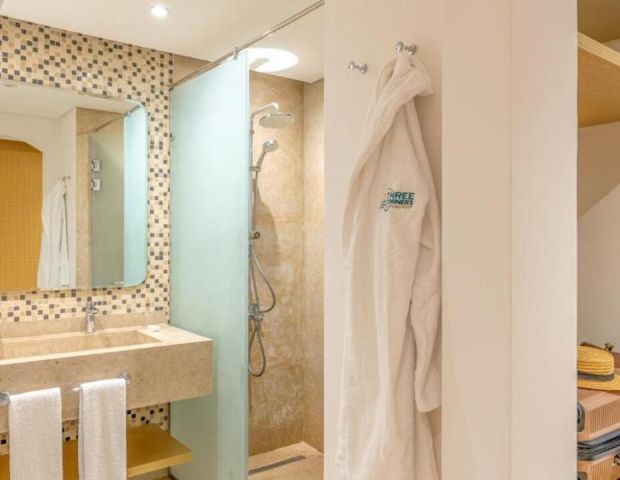 : Общо: 434-те стаи на The Three Corners Rihana Resort са красиво обзаведени и проектирани да предлагат максимален комфорт за почиващите. Сред стаите предлагаме свързани стаи, това за по-големи семейства.Специални съоръжения, отговарящи на европейските стандарти, са предвидени и в 14 определени стаи за гостите, използващи инвалидни колички.
