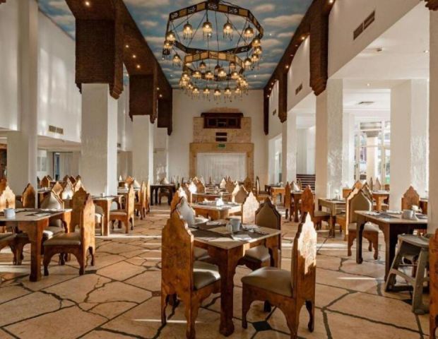 Концепцията е All Inclusive – закуска, обяд, вечеря на блок маса, леки следобедни закуски, сладкиши, местни алкохолни и безалкохолни напитки в определени часове от деня. Хотелът разполага с основен ресторант и няколко а ла карт ресторанта (италиански, ориенталски и рибен), както и разнообразни барове – лоби бар, бар на плажа, бар при басейна.