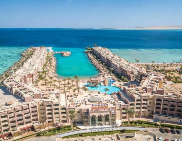 Sunny Days El Palacio предлага автентична ориенталска архитектура, просторна територия, частен плаж, лагуна и мост, водещ към малък остров. Хотелът разполага с открити басейни, аквапарк зона за деца, основен ресторант, тематични ресторанти, барове, амфитеатър, СПА център и търговски обекти.