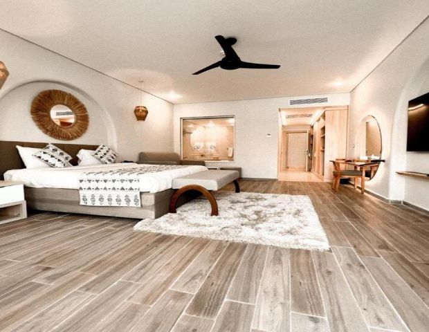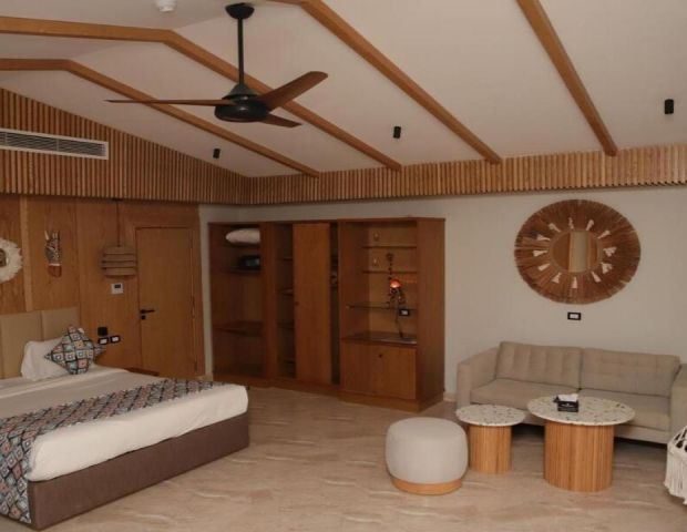 Хотелът разполага с общо 169 стаи, разположени в 4 триетажни корпуса и едноетажни бунгала. Всички стаи са оборудвани с климатик, телевизор, телефон, баня с душ, сешоар, минибар (платен), сейф (пплатен), балкон или тераса. Почистване на стаите и смяна на кърпите - всеки ден, смяна на спално бельо – 3 пъти в седмицата.