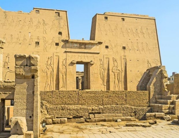 Строителството на Храма край Едфу е започнато през 237 г. пр.н.е., а е завършен двадесет години по-късно при династията на птолемеите в чест на Хор. Според преданията, този каменен монумент е построен на мястото, където се е състояла митичната битка между Хор И Сет. Истината обаче е, че това е последния от поредицата издигнати храмове тук като е завършен при Птолемей 12-и.