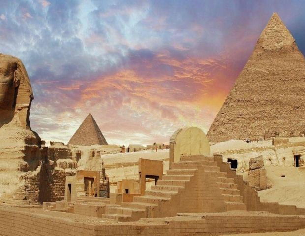 Посещение на известните пирамиди в Гиза. Пирамидите в Гиза от дълго време са най-посещаваната атракция около Кайро. От времето на тяхното изграждане пирамидите в Гиза въплъщават древността, мистерията и дават повод за невероятни хипотези. Пирамидите са единственото чудо на древния свят, което е оцеляло почти непокътнато. Погребалната голяма пирамида на Хеопс е най-старата в Гиза и най-голямата в света, изградена ок. 2500 г. пр.н.е. от близо 2,3 милиона варовикови блокове, тежащи средно по 2,75 тона и придвижвани от 100 000 роби. Трите по-малки пирамиди в съседство принадлежат на Хеопсовите царици или сестри. Сфинксът е разположен наблизо, странна фигура с тяло на лъв, лице на човек и царска брада.