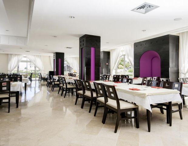 All Inclusive изхранване, няколко басейна, водни пързалки, детска зона, амфитеатър, анимационни програми и СПА услуги. Подходящ е както за семейства с деца, така и за двойки.