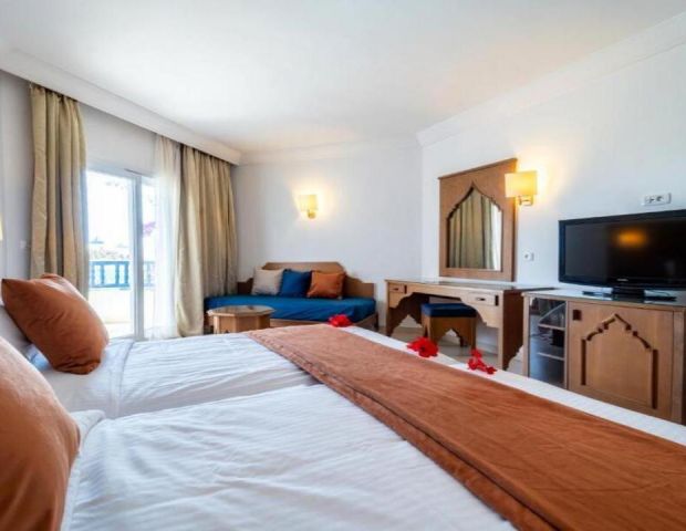 Хотелът разполага със стандартни единични, двойни, тройни, четворни стаи. Всички са декорирани в модерен тунизийски стил, разполагат със самостоятелна баня със сешоар, също така сейф, LCD телевизор и балкон или тераса. Има също и супериорни стаи с изглед към басейн.