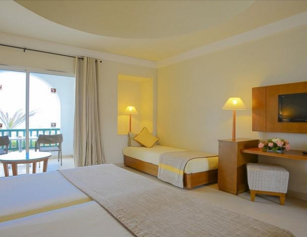 Бунгало - обща площ 42 кв.м, гледка към басейн или градина. Намира се в двуетажни бунгала. Разположени в непосредствена близост до плажа, до който имат директен достъп. Има отделна зона на плажа и собствен басейн с гледка към морето.