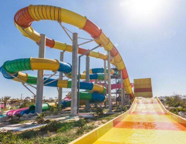 Водният парк от 4 хектара включва много атракции: басейн с вълни, мързелива река, пързалка Space Hole, комплекс Multi Slide - тунел, пързалка с камикадзе, рафтинг, черна дупка, Turbo Lance, тематични аква зони - Пиратски кораб и Делфин, водни гъби и пързалка Змия.