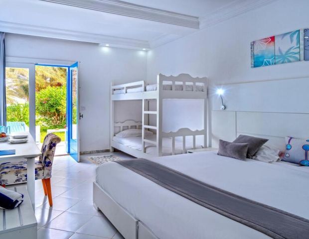 Хотелът разполага с общо 212 стаи в двуетажната сграда и 9 двуетажни бунгала на площ от 60 000 кв.м., без асаньор - Standard Room (22-26 кв.м.), Sea Side Room (22-26 кв.м. които са в по-голяма близост до морето), Family Room (24-28 кв.м), Family Superior (36-38 кв.м. с 2 спални, разположени в бунгала).