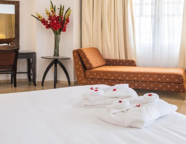 Всички стаи са оборудвани с климатик, сейф, телевизор, мини бар (празен), сешоар, тоалетни принадлежности, балкон или тераса. баня с душ/вана, Wi-Fi. Почистване на стаите - всеки ден.