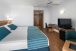 Премиум стая - Премиум стаите предлагат специални услуги като кана за чай и кафе, минибар, сейф с място за лаптоп, балкон и гледка към морето - 30 м², халати и чехли,вода и сладки за добре дошли, климатик, сейф (срещу заплащане), огледало в цял ръст, сешоар, телефон, телевизор със сателитни канали безплатен Wi Fi,./максимален капацитет 3 души