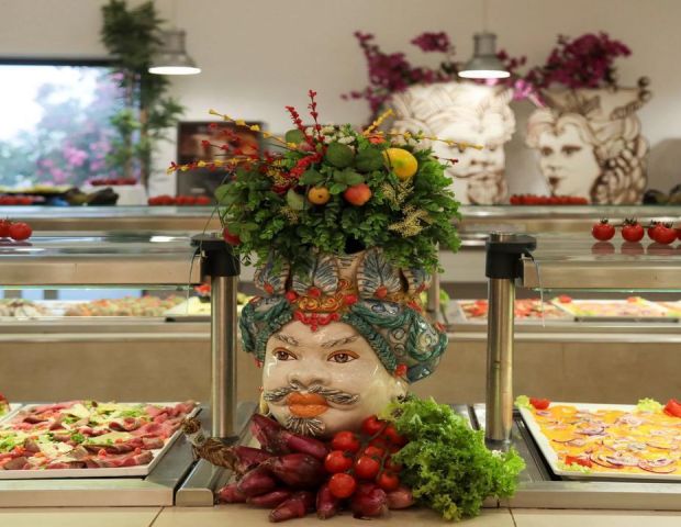 В основния ресторант храненията са на шведска маса със самостоятелно обслужване, с различни тематични вечери – напр. сицилианска, морска и т.н.