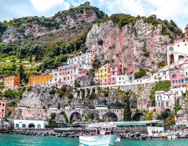 Отпътуването започва рано сутринта с автобус до Салерно, откъдето се качваме на корабче за морска разходка, разкриваща едни от най-живописните гледки в Италия - съвършена симфония от отвесни скали, лазурни води и очарователни крайбрежни селища.