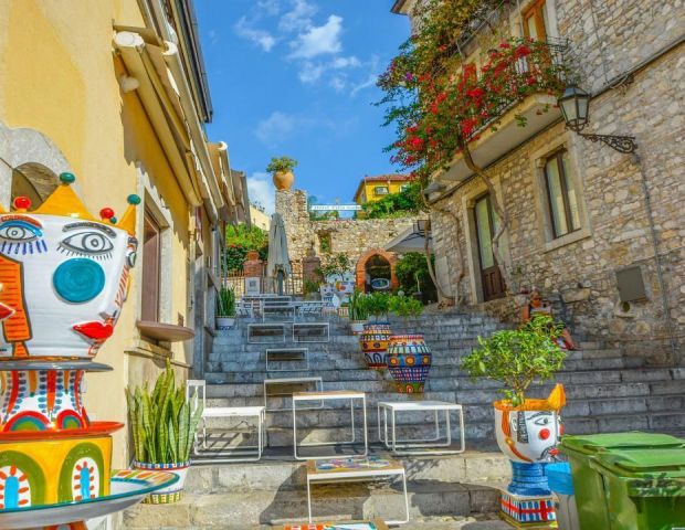 Посещение на Таормина - Aвтобусът ни оставя на паркинг в подножието на града, откъдето се придвижваме до централната улица с безплатно бусче. Свободно време за разходка по живописните улички на града.