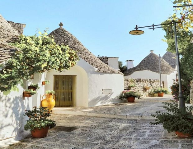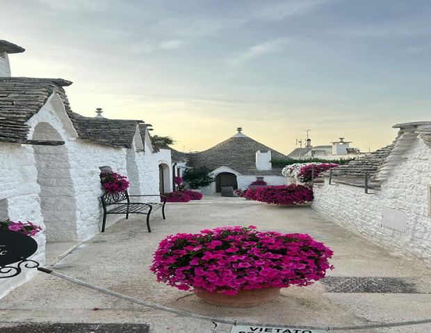 Първата спирка е Алберобело - визитната картичка на Пулия и истинска приказка, пренесена в реалността. Градът очарова с уникалните си трули - малки бели къщички с коносовидни каменни покриви, изградени без спойка - архитектурна хитрост от Средновековието, възникнала като своеобразна „данъчна измама“, позволяваща сградите да бъдат бързо разрушавани при нужда. Днес трулите са под закрилата на ЮНЕСКО и превръщат града в културен и архитектурен феномен.