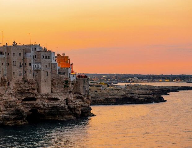 Първата спирка е Полиняно а Маре - град, издигнат драматично върху внушителни отвесни скали, кацнал над сините води на Адриатика. Тук някога е минавал античният римски път „Виа Траяна“, а днес мястото пленява със своето кристално чисто море, над 20 км плажна ивица и множество пещери, изваяни от времето и водата. Наричан с право „Перлата на Адриатика“, градът омагьосва с уникална архитектура, естествени заливи и пейзажи, които спират дъха.