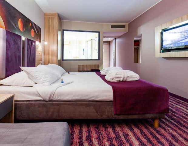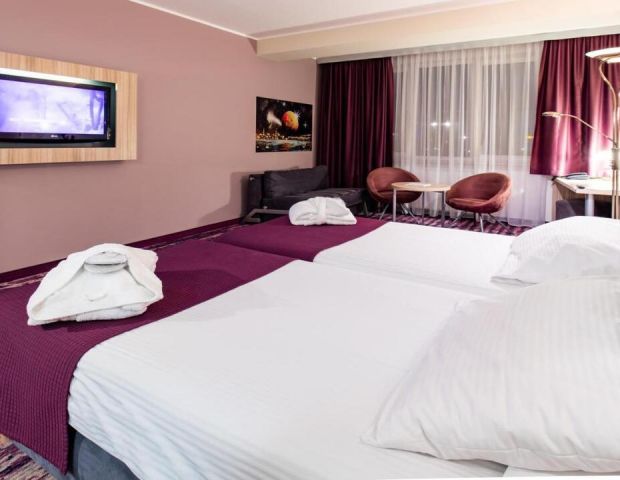 Хотел Galaxy предлага на своите гости висококачествено настаняване и изключително удобства. Стаите са модерно обзаведени, с комфортни легла и подово отопление, за да осигурят уютна обстановка по време на престоя. Всяка стая разполага с минибар, телевизор с плосък екран и безплатен достъп до Wi-Fi. Гостите също така могат да се насладят на частни балкони с прекрасна гледка към града. Всички стаи разполагат с достъп до хидромасажна вана, сауни, басейн и фитнес център. СПА центърът предлага широка гама от процедури за красота и релаксация. Стаите разполагат с LCD телевизор със сателитни канали.